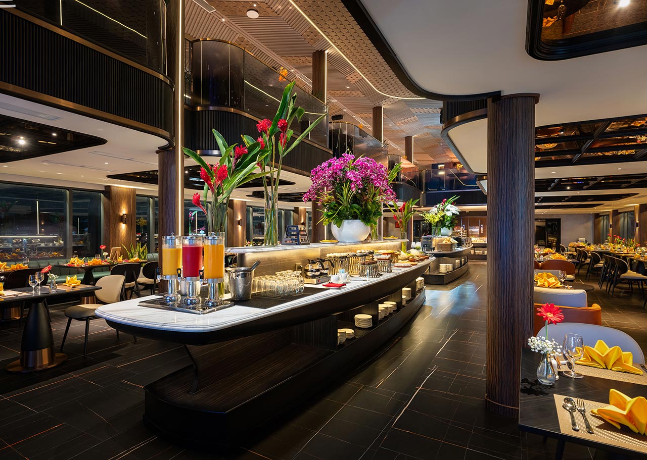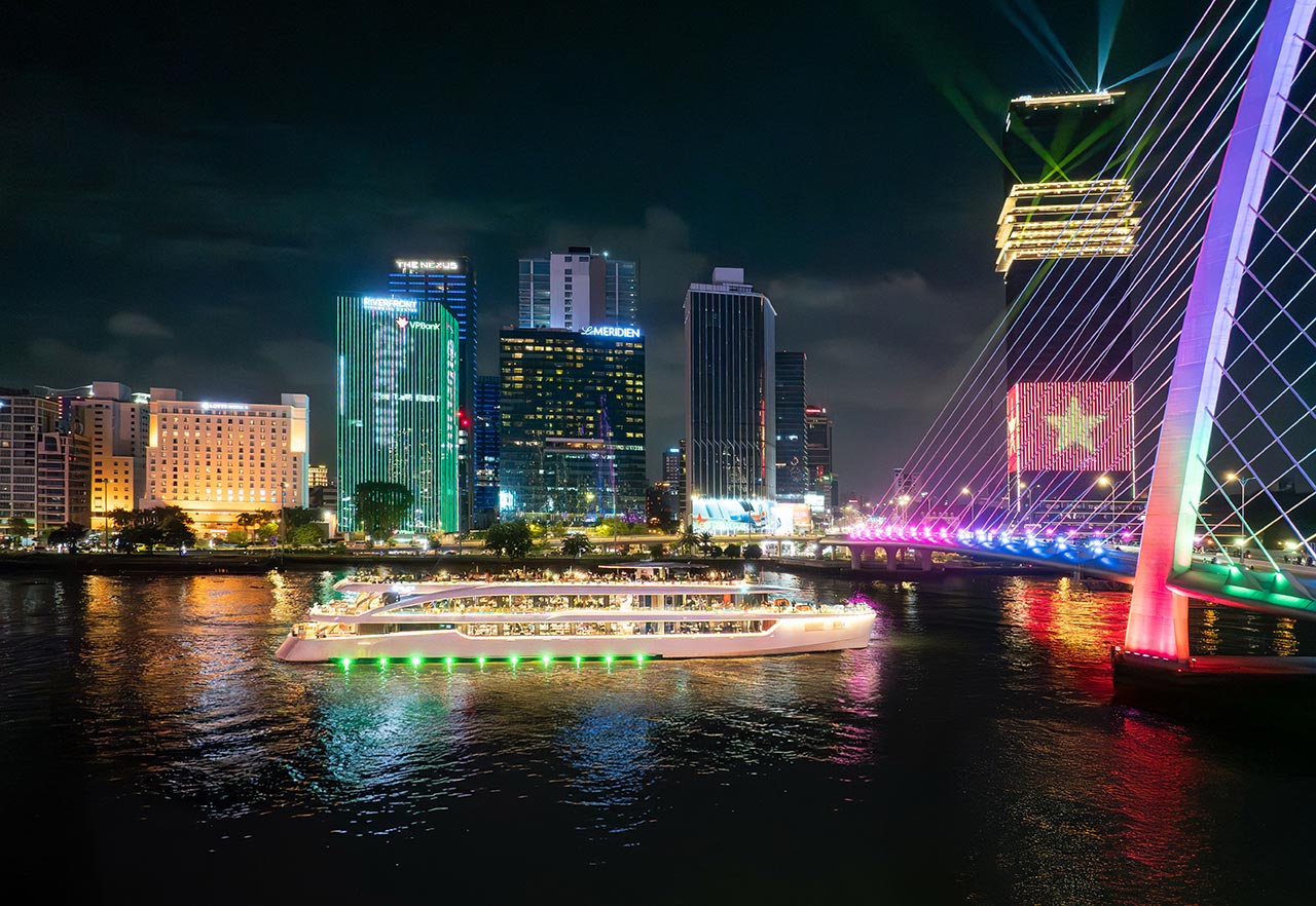 As the city lights shimmer upon the Saigon River, Elite of Saigon emerges as a masterpiece that unites the essence of refined gastronomy. Designed across three contemporary decks with a capacity of up to 500 guests, it offers the perfect setting to indulge in world-class dining entwined with captivating entertainment. Allow us to take you on a journey of emotions and flavors, creating unforgettable moments while embracing the radiant beauty of the city from a truly panoramic perspective.